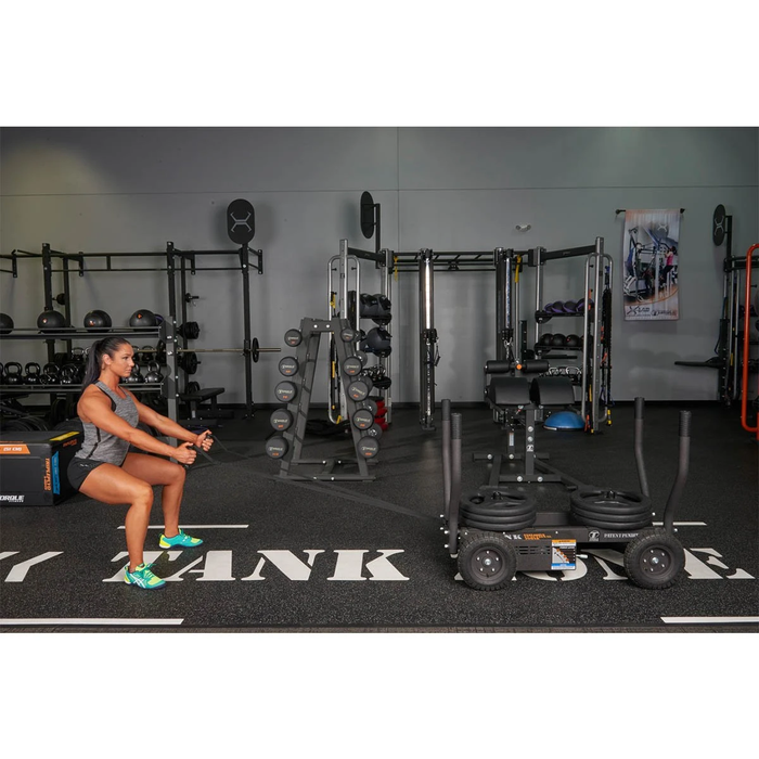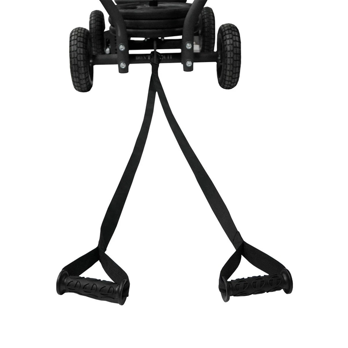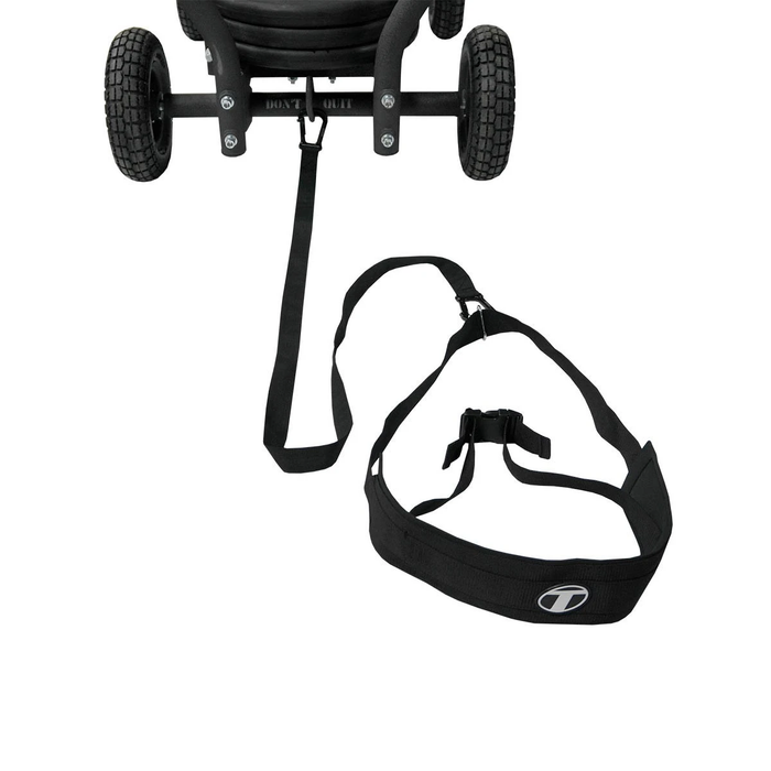 The Tow Kit expands the training functionality of the TANK. Tow, standing row, lateral sidestep, sled sprint training, and backward run are just a few things that the dual handled V-Strap, sprint harness, and tow strap allow. The V-handles feature over-molded rubber T-Grips and the padded waist harness can be adjusted and secured with a buckle.